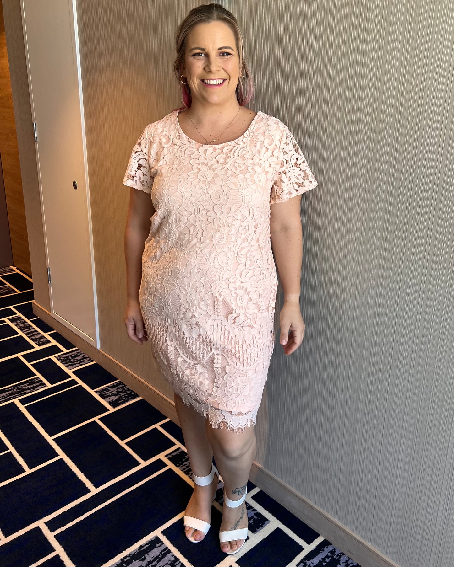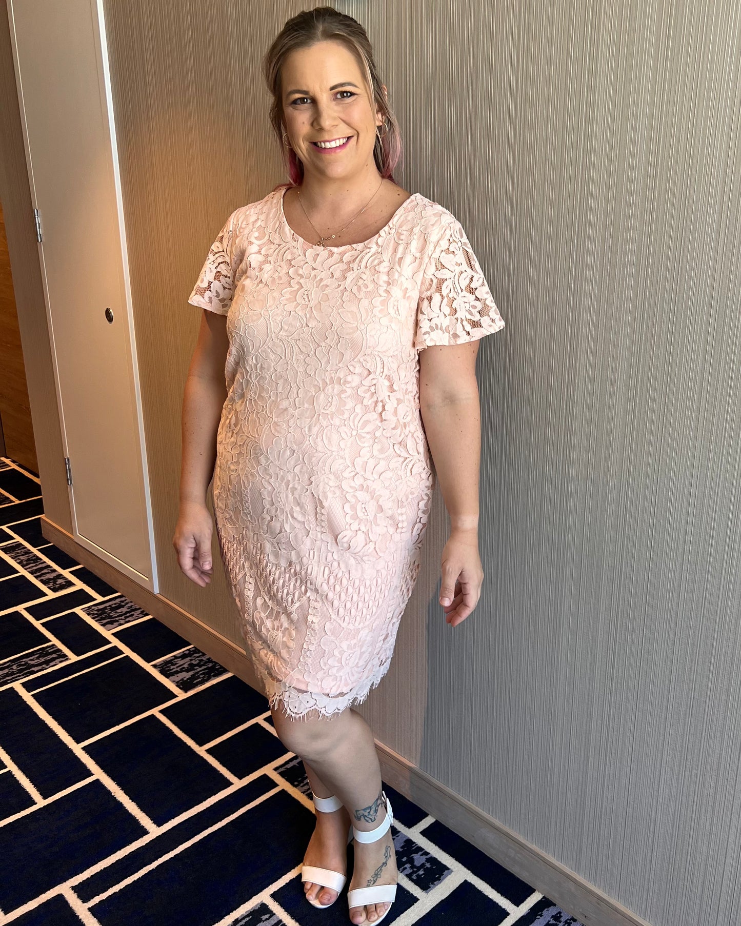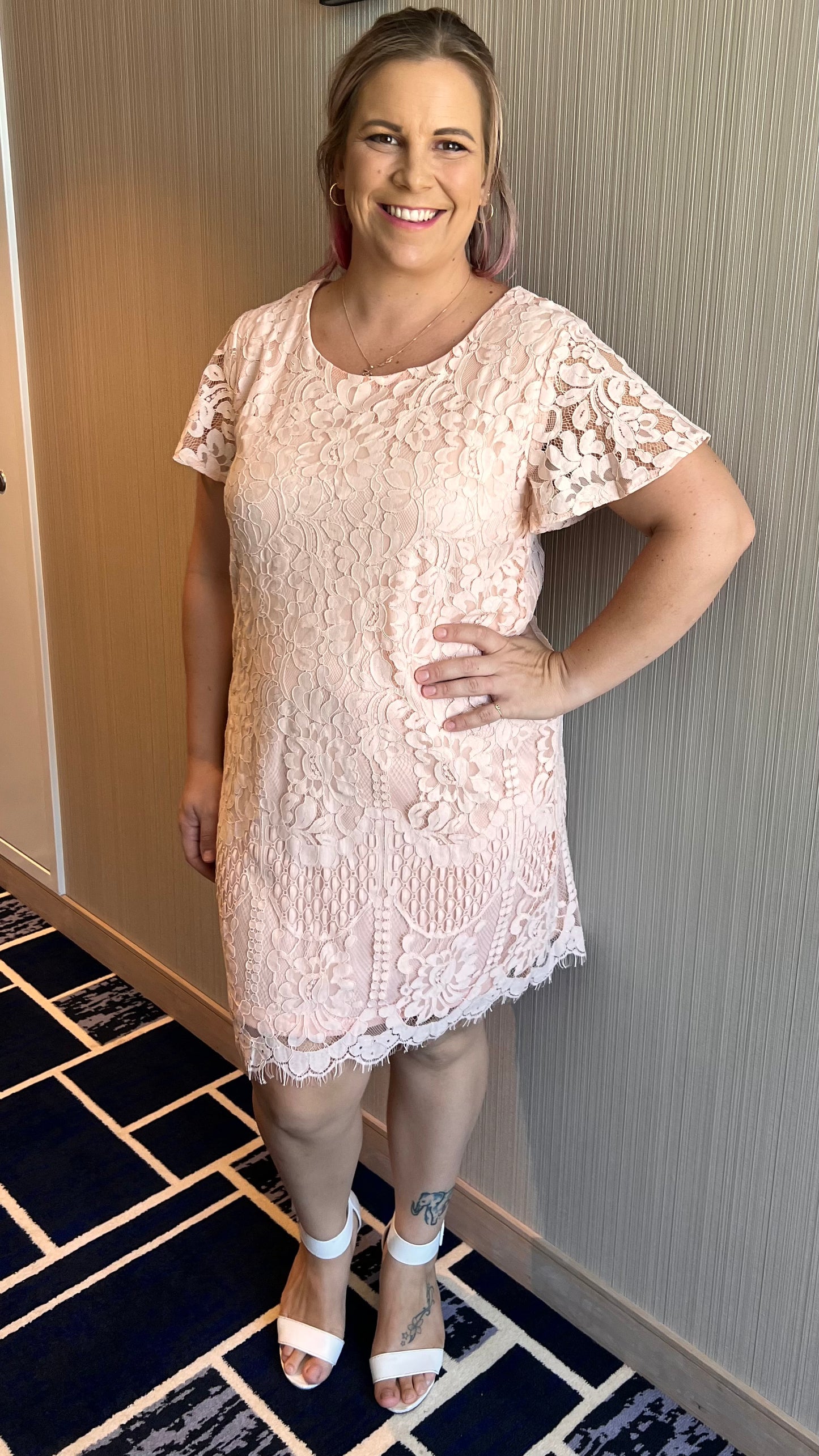 Mindy is the sweetest little lace shift dress