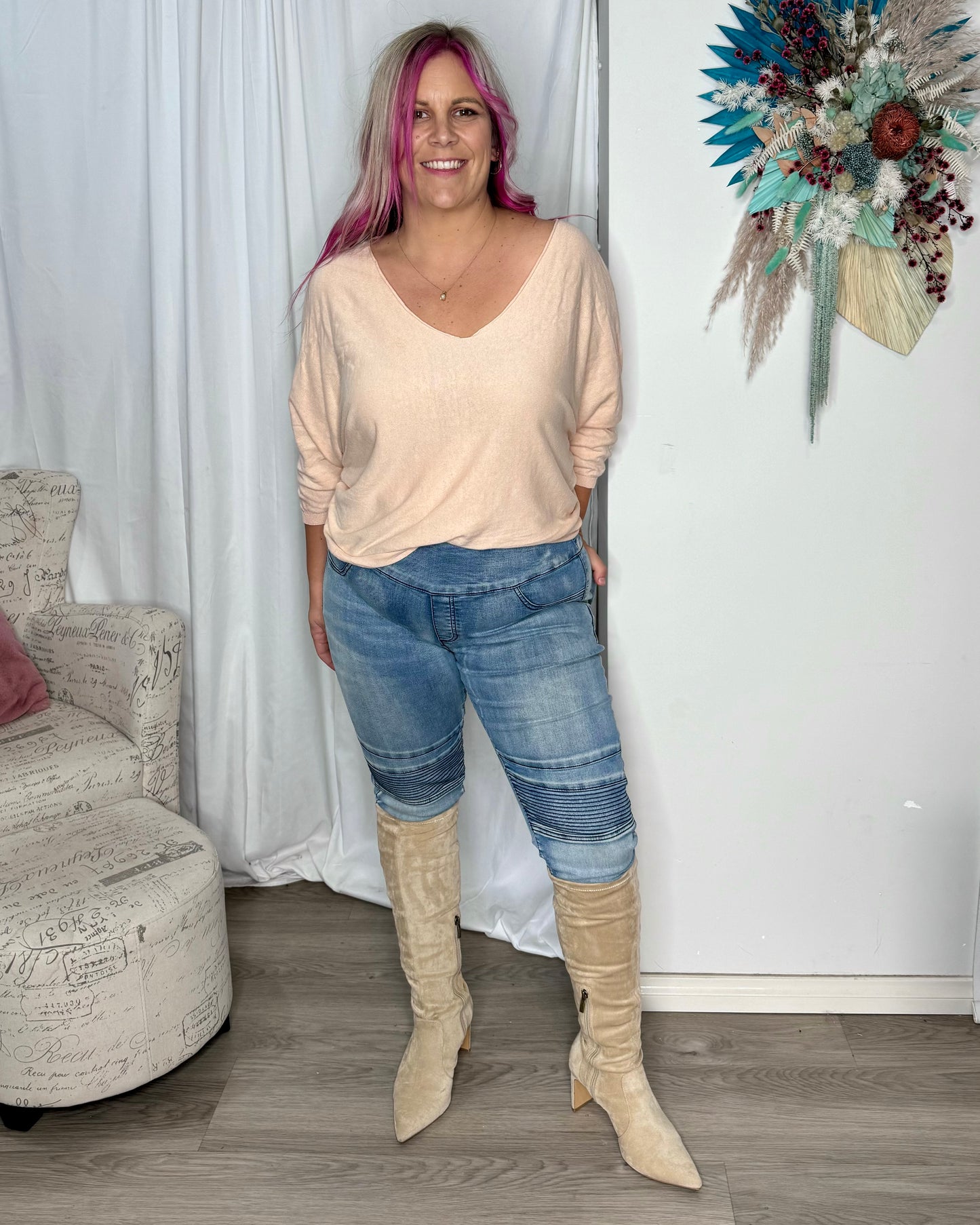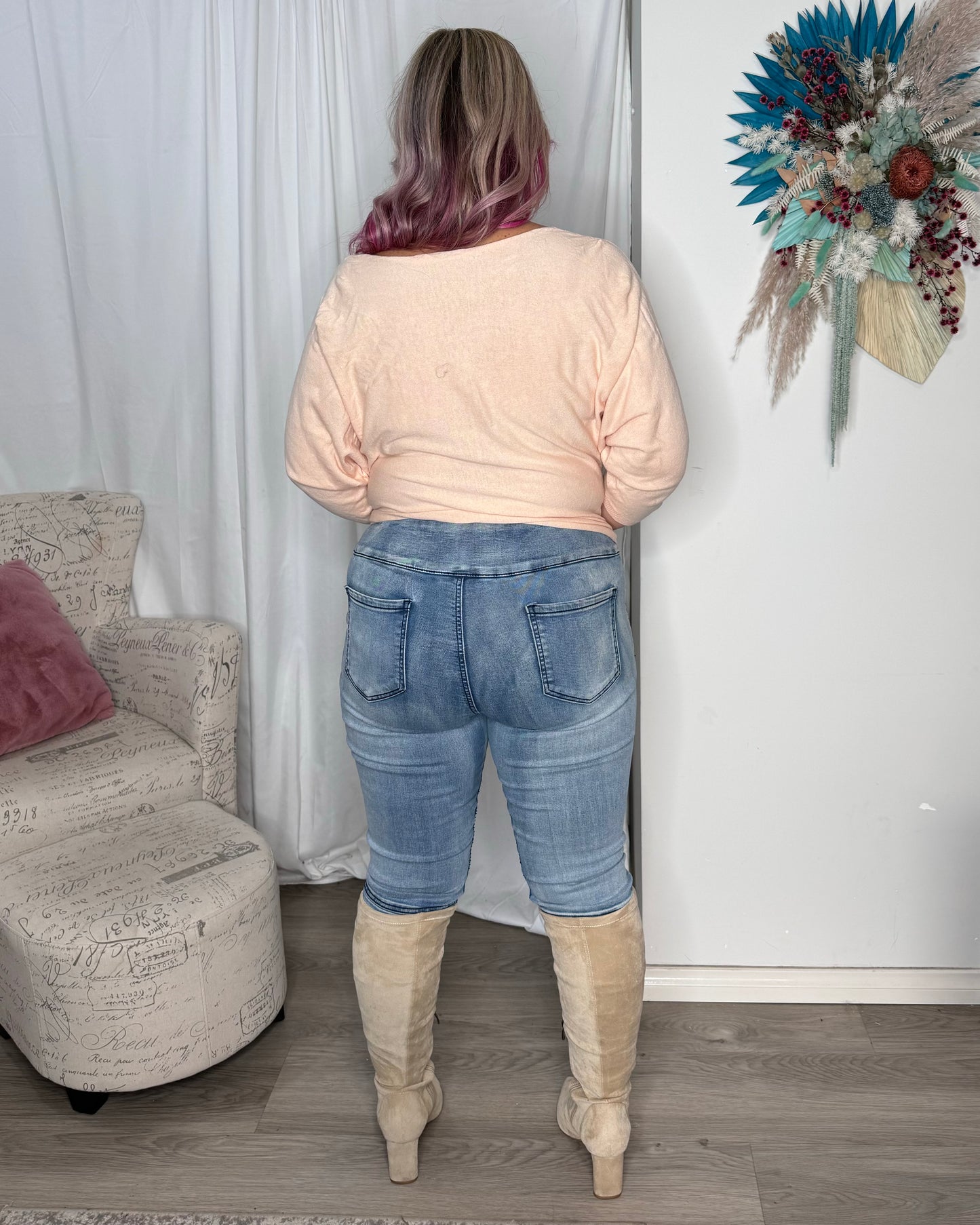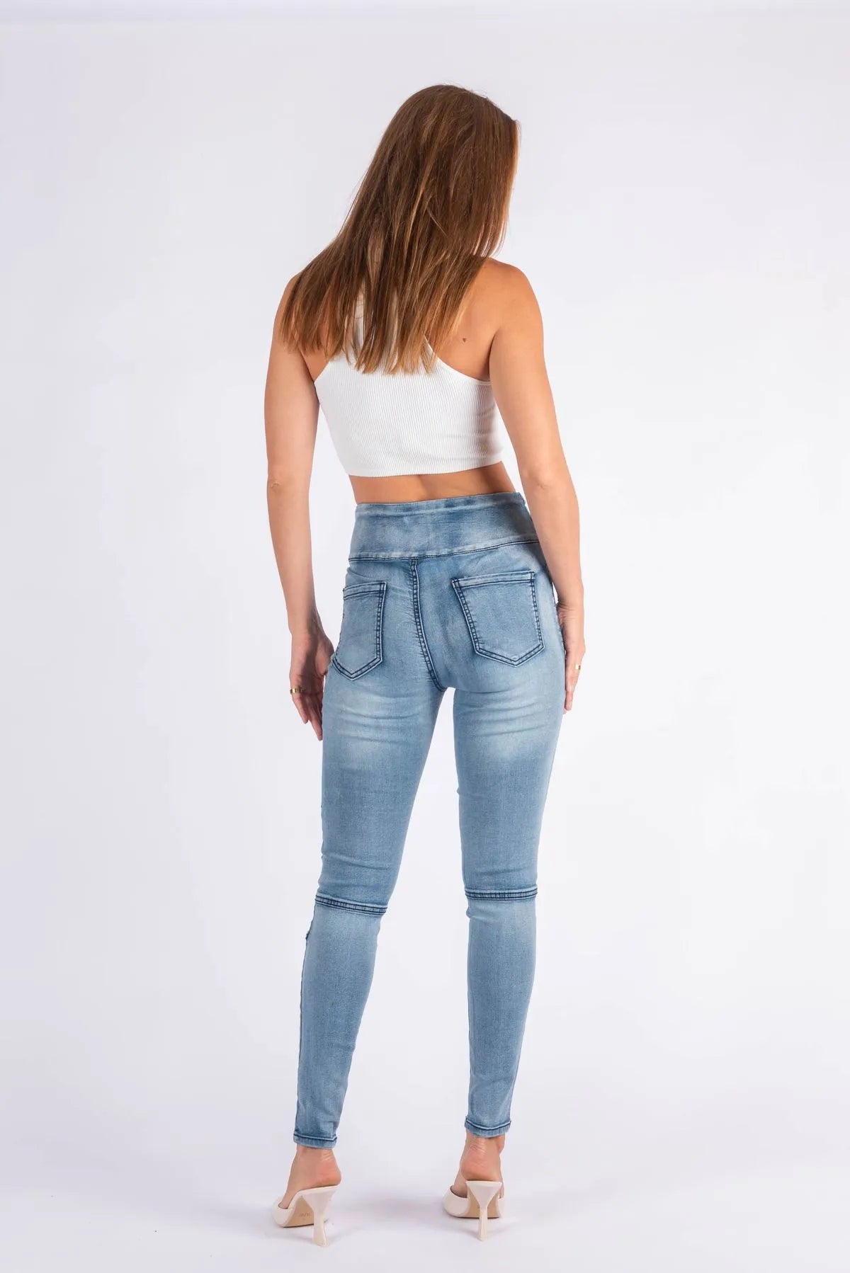 The ultimate in comfort. With the look of jeans but the comfort of leggings, you won’t want to take these off! With a comfortable and stretchy fit, these jeans allow you to move around with ease while still looking stylish. They are incredibly versatile and can be dressed up or down for any occasion. Whether you're running errands or going out for a night on the town, these jeans will keep you looking and feeling great. Try them out for yourself and see why everyone is raving about our Wakee Panel Jeans