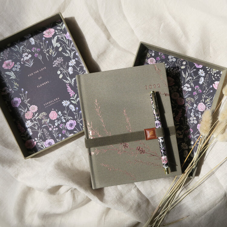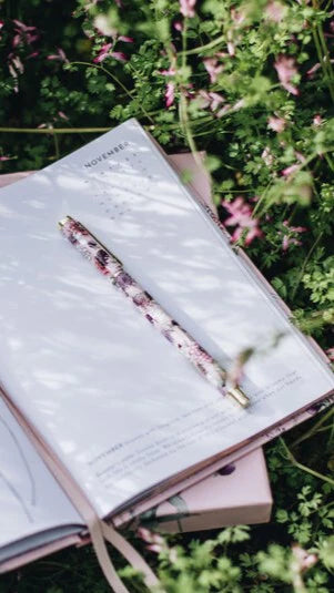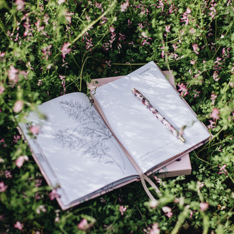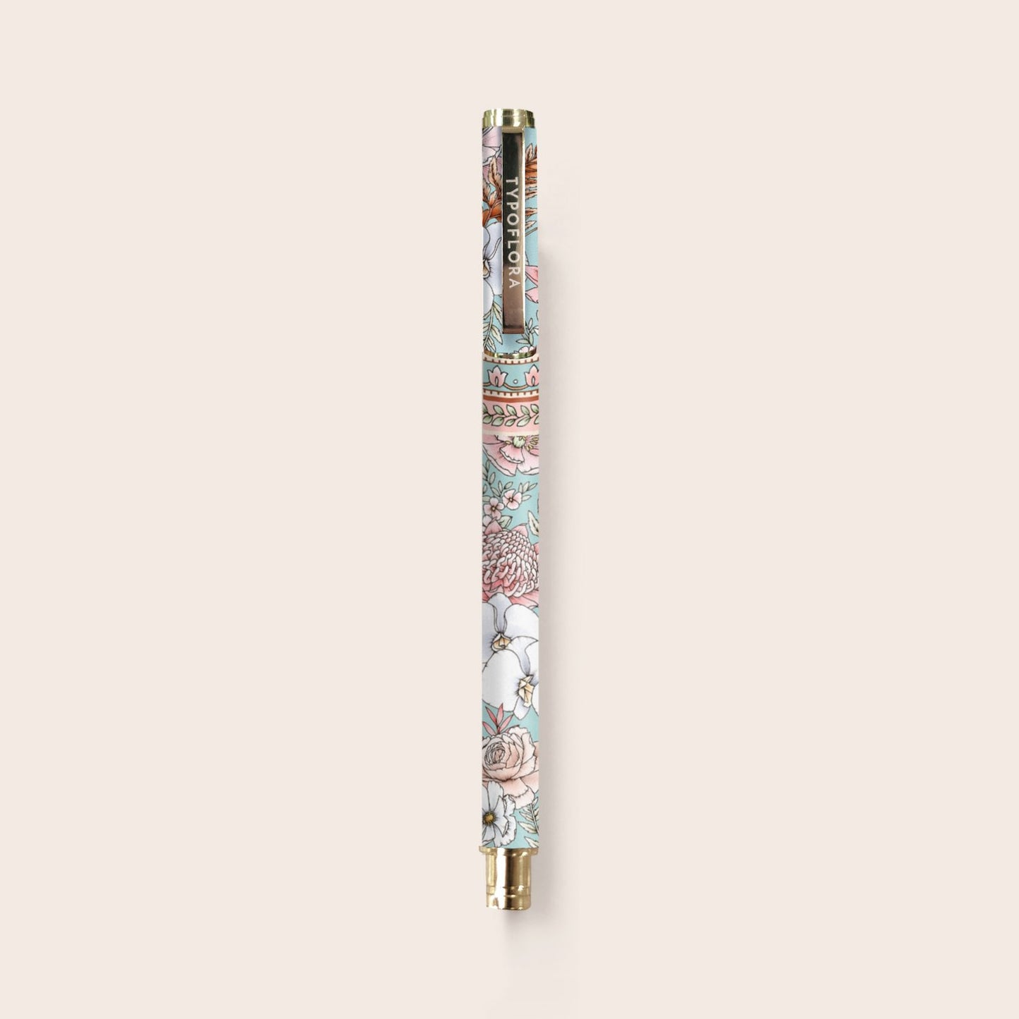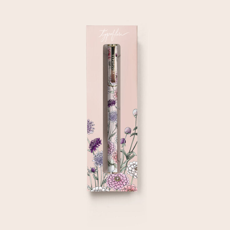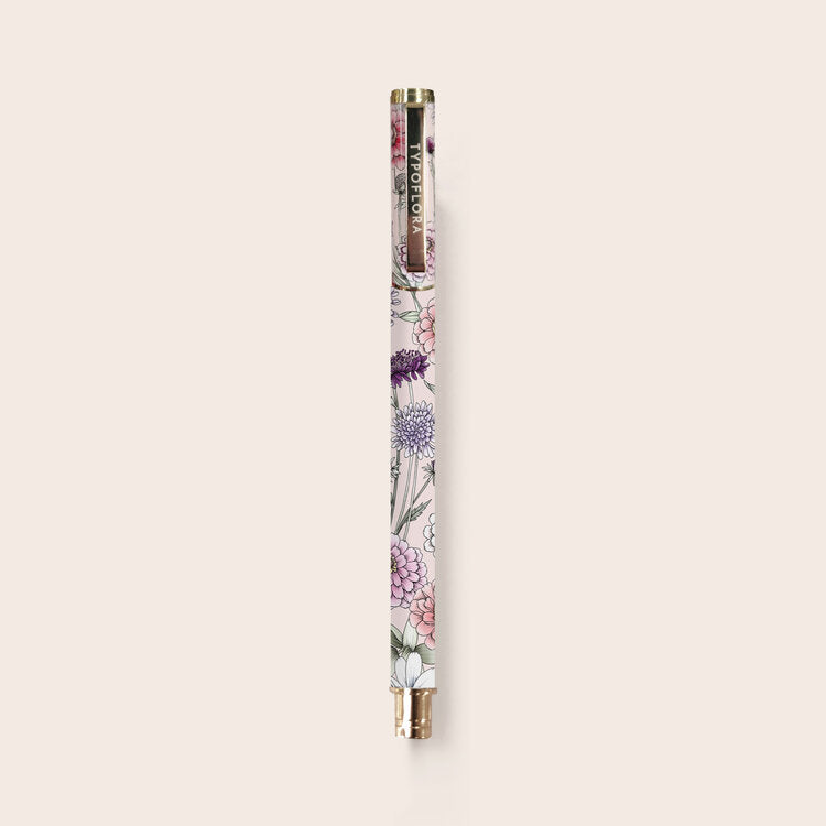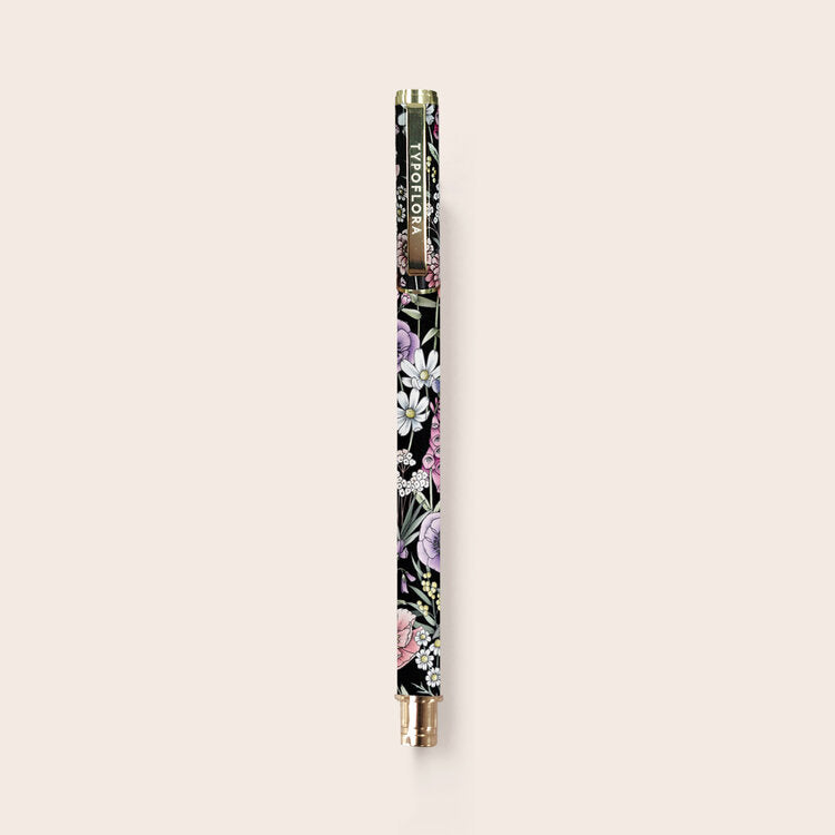 Compliment your Typoflora notebook with a refillable rollerball pen in a gorgeous floral print