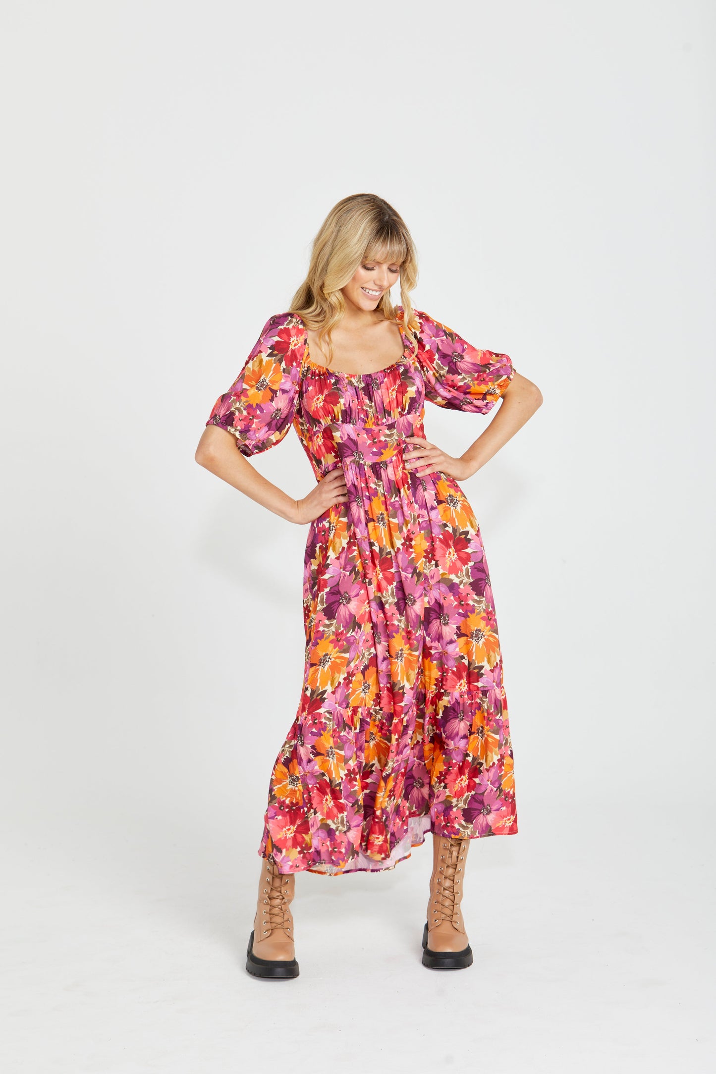 Introducing the Yasmin Frill Hem Midi Dress! With its flirty frill hem and elasticated square neckline, it exudes confidence and grace. The back shirred panel ensures a perfect fit, while the puff sleeves add a touch of vintage-inspired charm. Whether you're attending a special occasion or simply want to feel fabulous, the Yasmin Frill Hem Midi Dress is your go-to choice